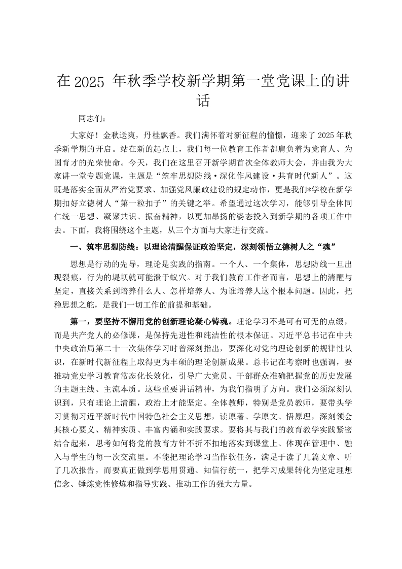 首页工作文档在2025年秋季学校新学期第一堂党课上的讲话