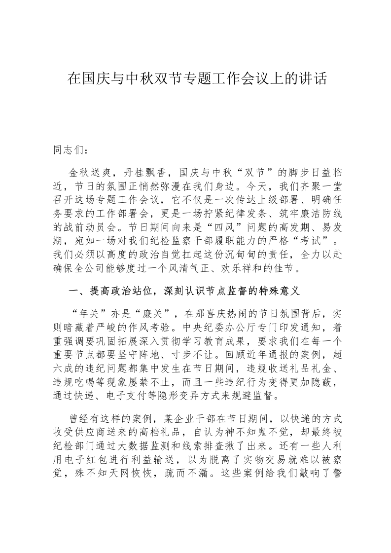 首页工作文档在国庆与中秋双节专题工作会议上的讲话