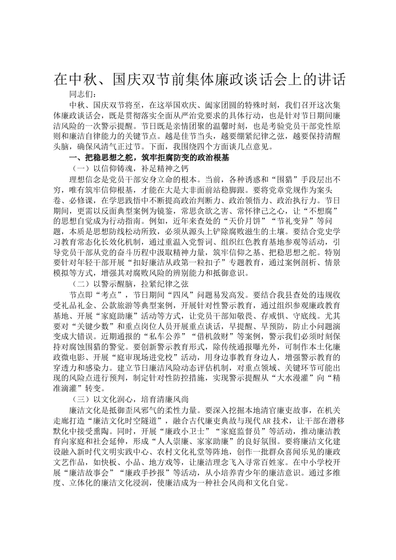 在中秋、国庆双节前集体廉政谈话会上的讲话