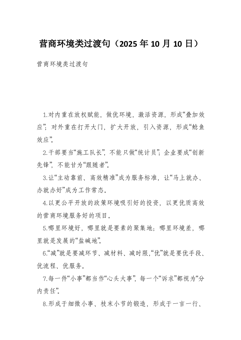 首页每日金句营商环境类过渡句(2025年10月10日)