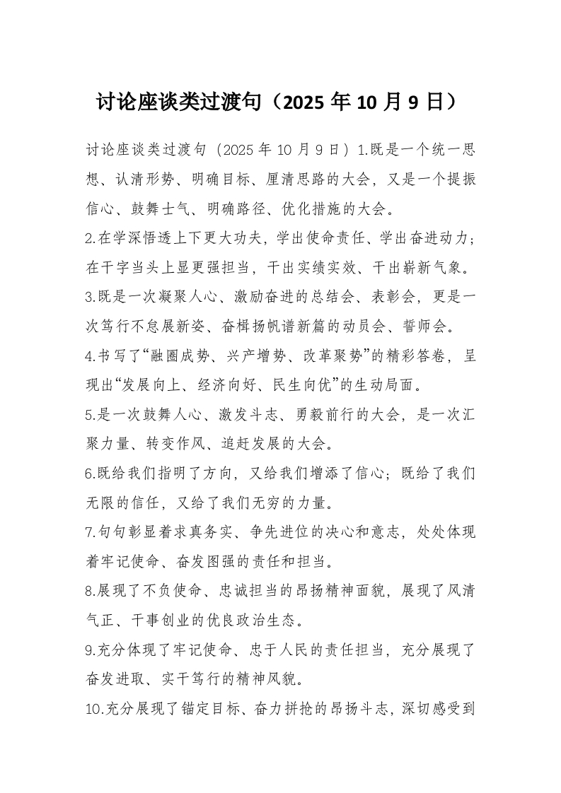 首页每日金句讨论座谈类过渡句(2025年10月9日)