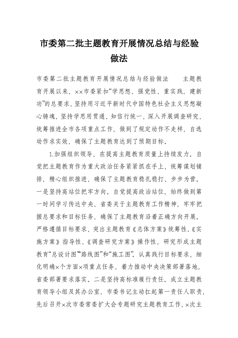 首页精选范文市委第二批主题教育开展情况总结与经验做法