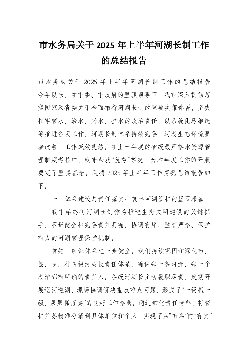 市水务局关于2025年上半年河湖长制工作的总结报告