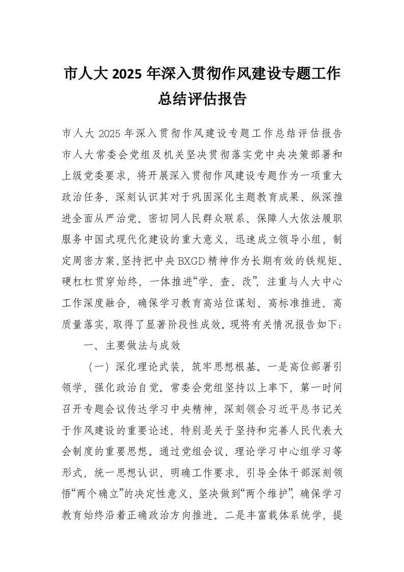 首页精选范文市人大2025年深入贯彻作风建设专题工作总结评估报告