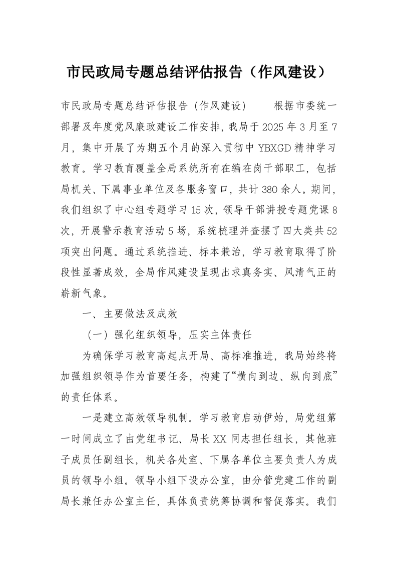 首页精选范文市民政局专题总结评估报告(作风建设)