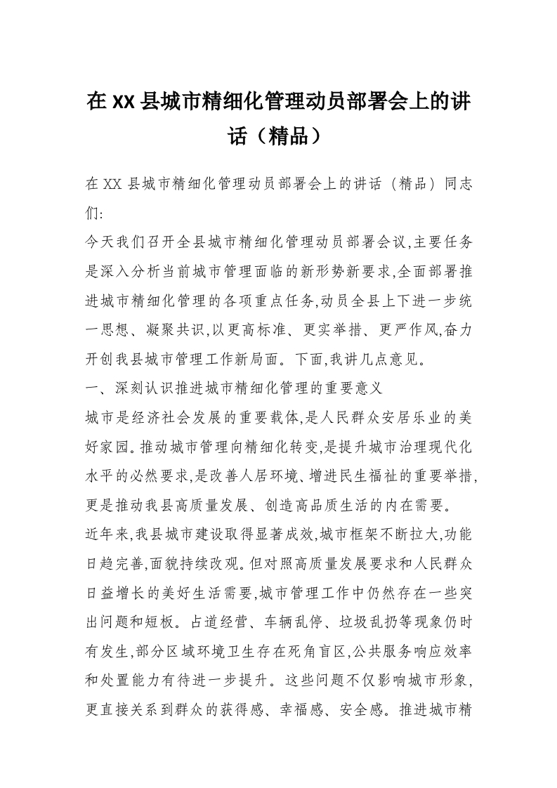 在XX县城市精细化管理动员部署会上的讲话(精品)