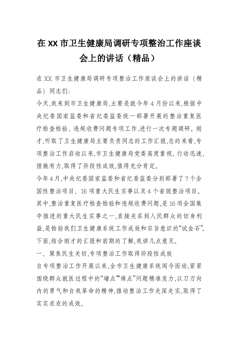 在XX市卫生健康局调研专项整治工作座谈会上的讲话(精品)