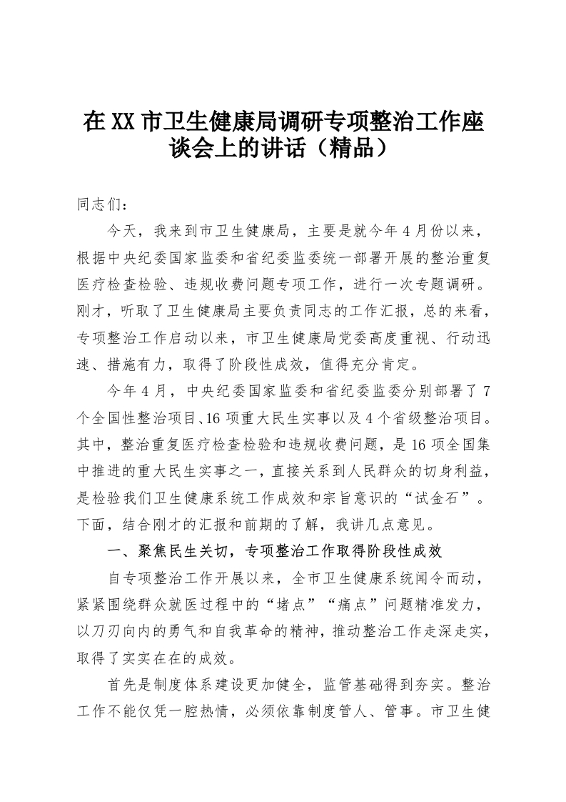 在XX市卫生健康局调研专项整治工作座谈会上的讲话(精品)