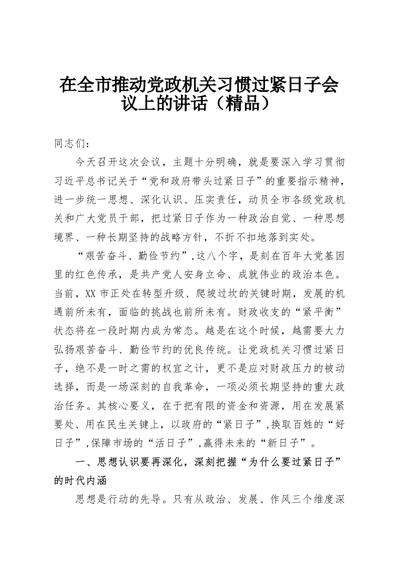 在全市推动党政机关习惯过紧日子会议上的讲话(精品)