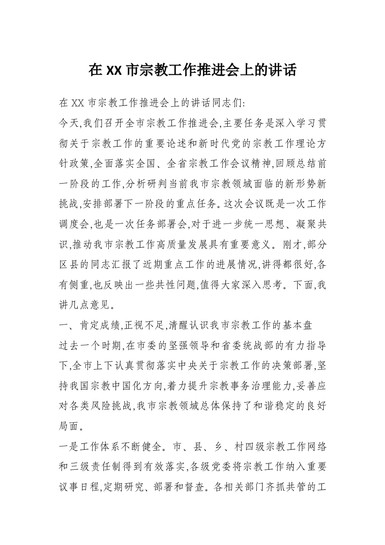 首页讲课讲稿在XX市宗教工作推进会上的讲话