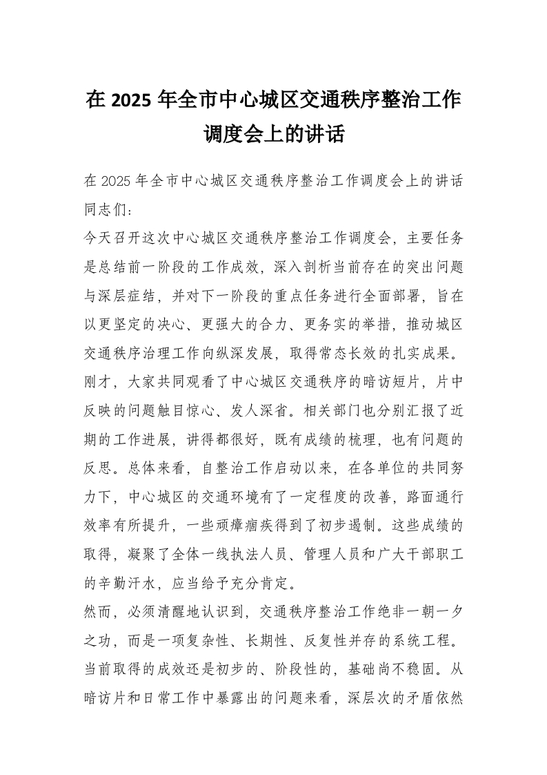 在2025年全市中心城区交通秩序整治工作调度会上的讲话