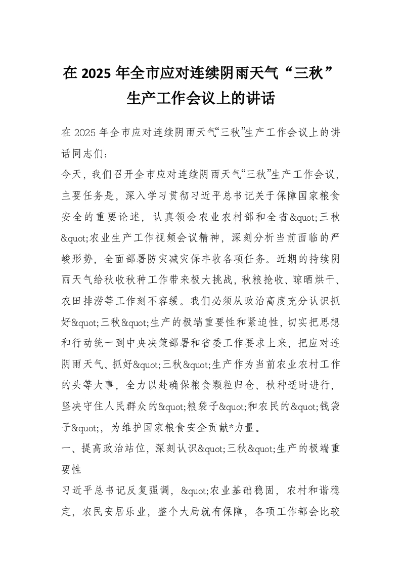 在2025年全市应对连续阴雨天气“三秋”生产工作会议上的讲话
