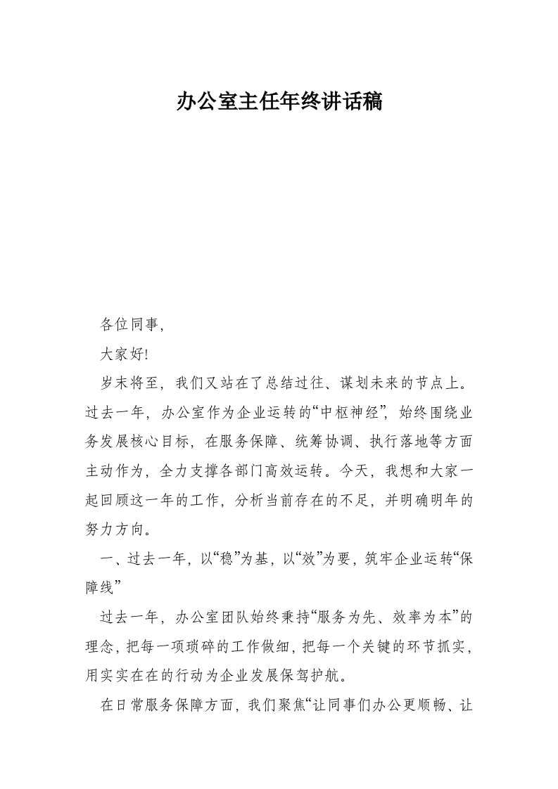办公室主任年终讲话稿