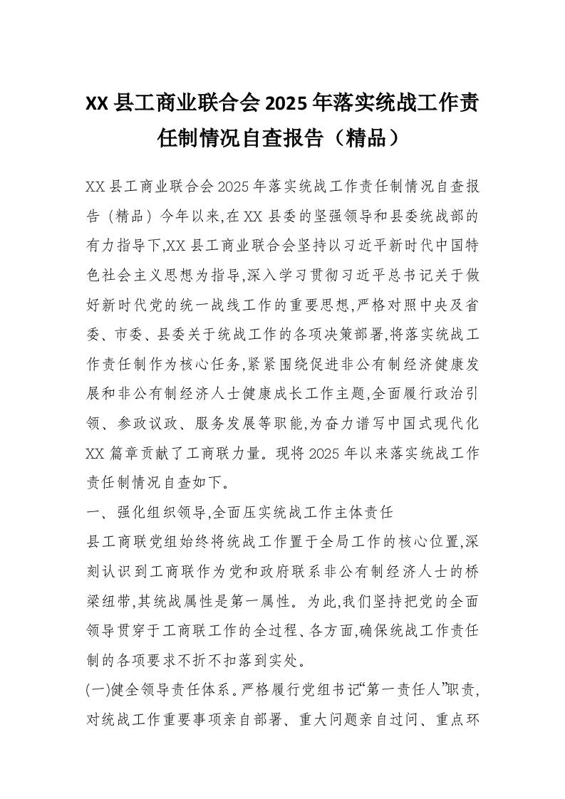 XX县工商业联合会2025年落实统战工作责任制情况自查报告(精品)