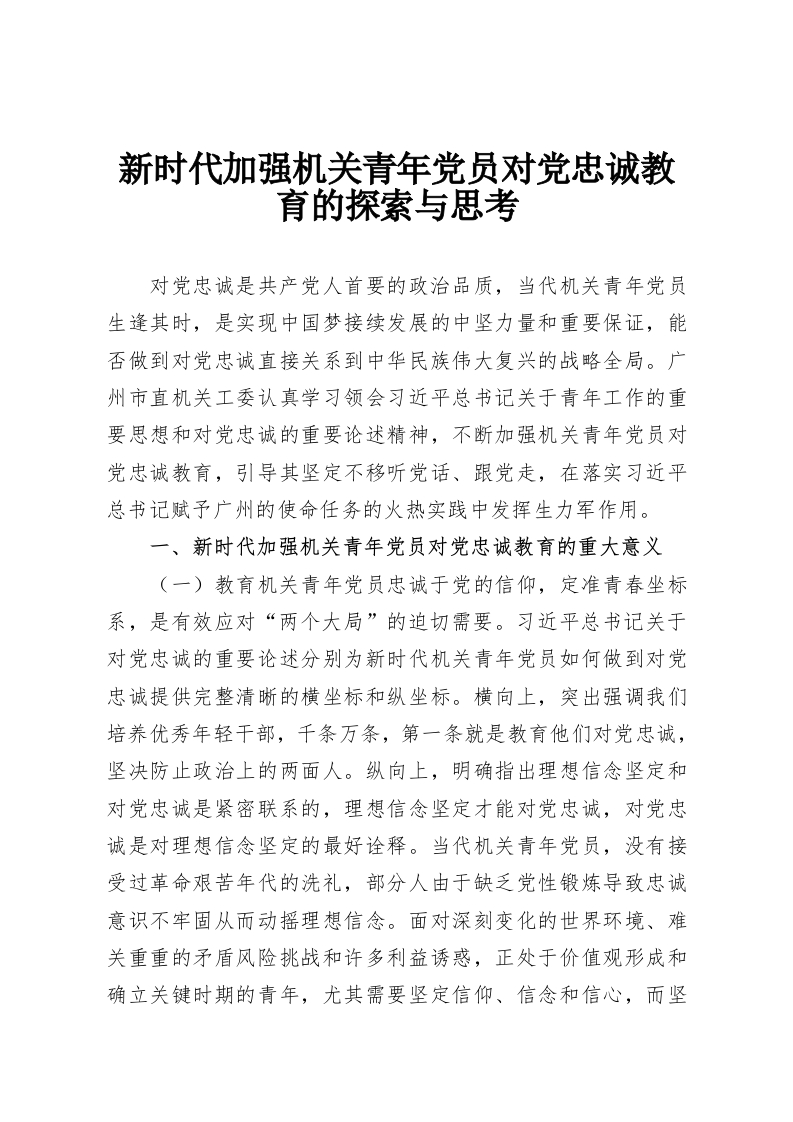 新时代加强机关青年党员对党忠诚教育的探索与思考
