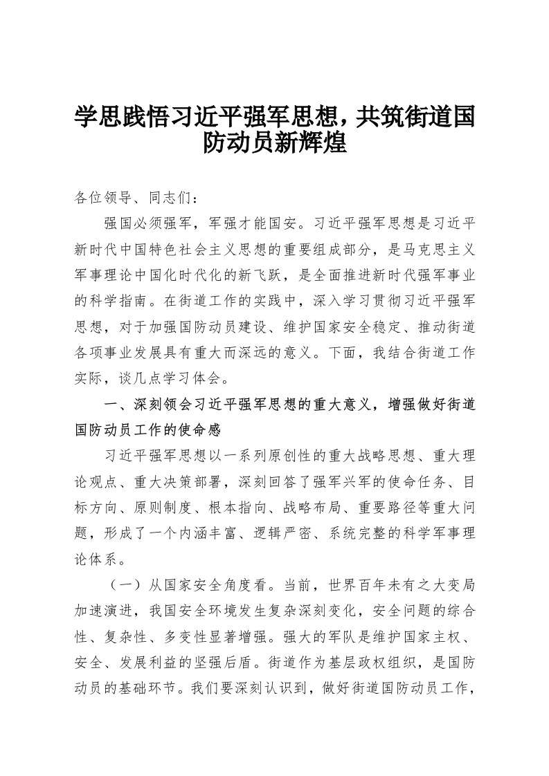 首页写作素材学思践悟***强军思想,共筑街道国防动员新辉煌
