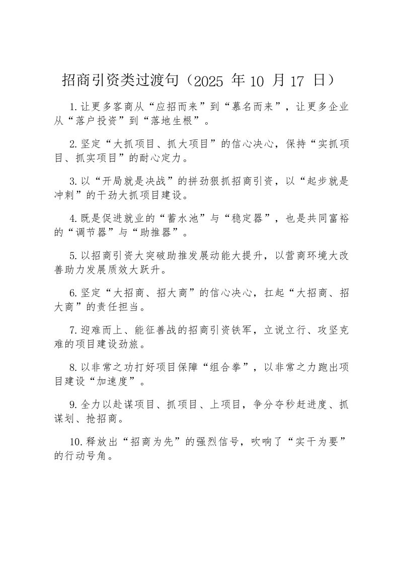 首页每日金句招商引资类过渡句(2025年10月17日)
