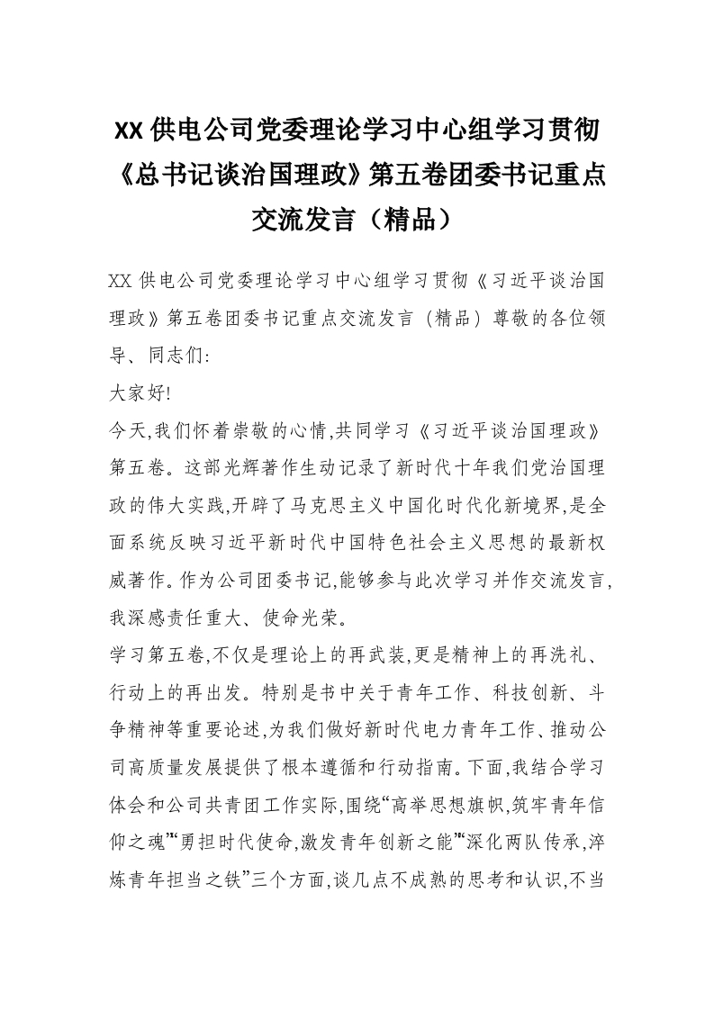 - 供电公司党委理论学习中心组学习贯彻《总书记谈治国理政》第五卷团委书记重点交流发言
