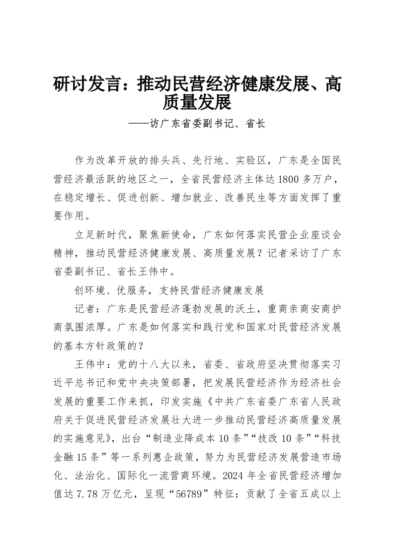 研讨发言:推动民营经济健康发展、高质量发展