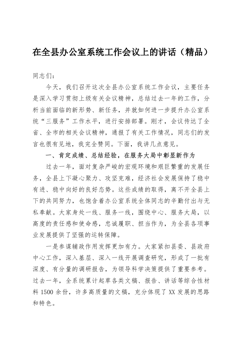 首页精选范文在全县办公室系统工作会议上的讲话(精品)