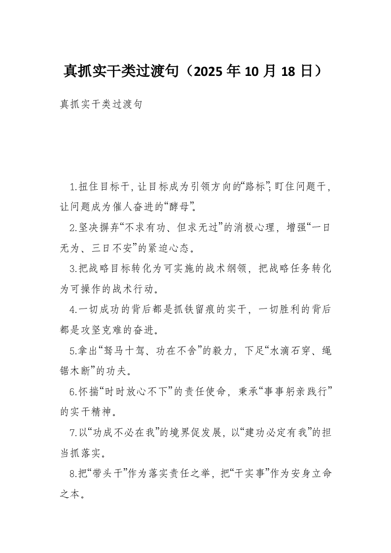 首页每日金句真抓实干类过渡句(2025年10月18日)