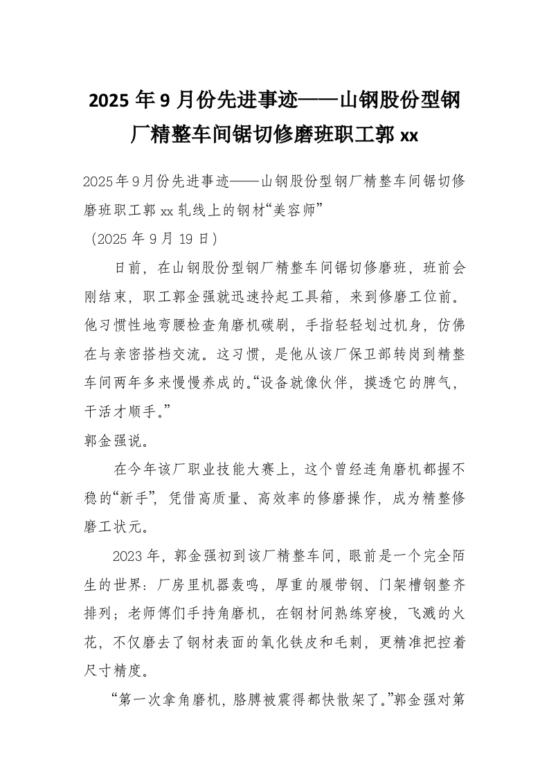 2025年9月份先进事迹——山钢股份型钢厂精整车间锯切修磨班职工郭xx