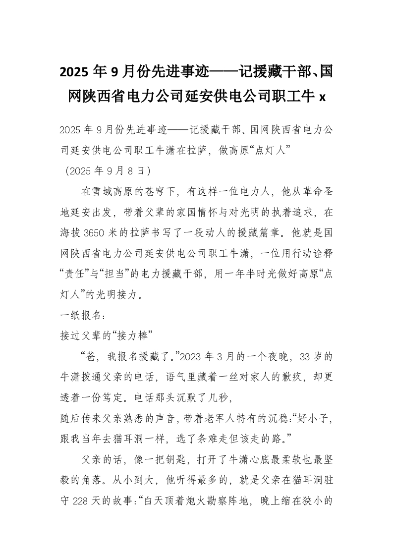 2025年9月份先进事迹——记援藏干部、国网陕西省电力公司延安供电公司职工牛x