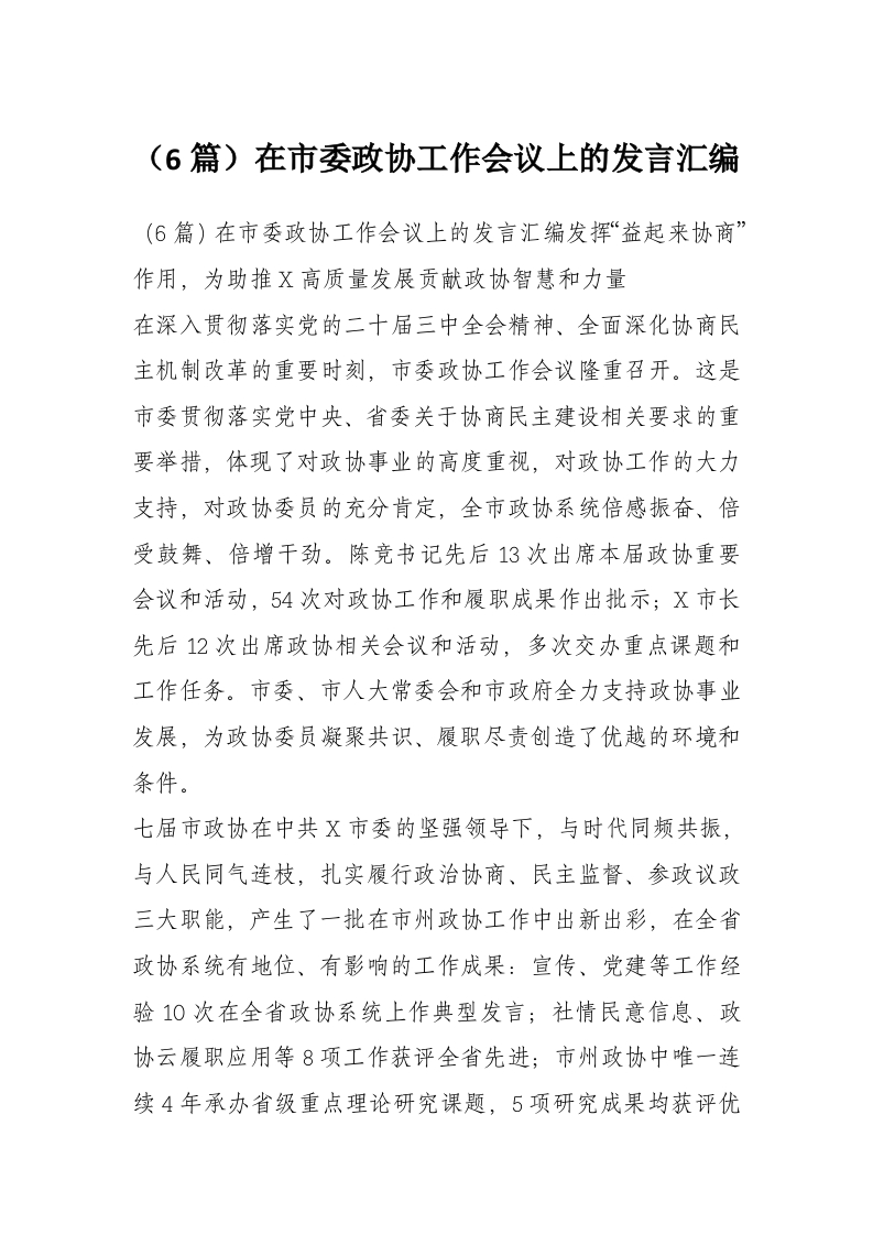 首页学习提升(6篇)在市委政协工作会议上的发言汇编