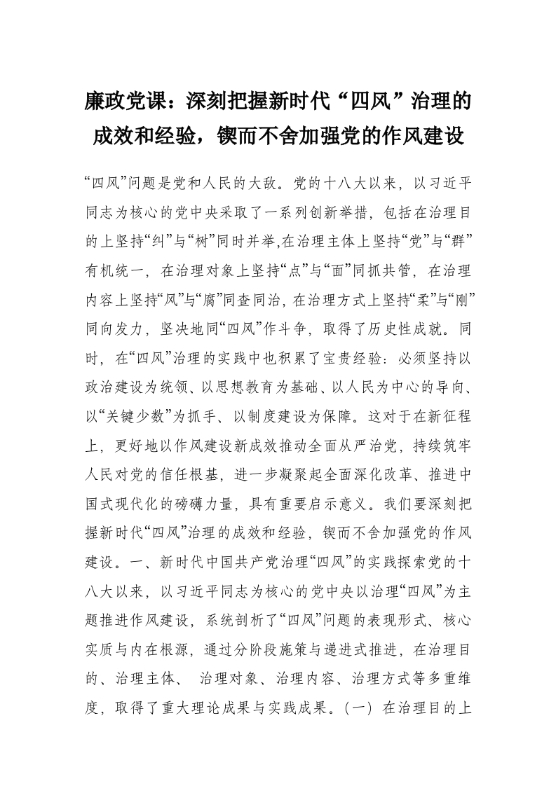 - 廉政党课:深刻把握新时代四风治理的成效和经验,锲而不舍加强党的作风建设