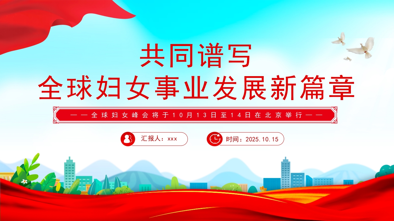 首页PPT模板2025共同谱写全球妇女事业发展新篇章PPT全球妇女峰会课件