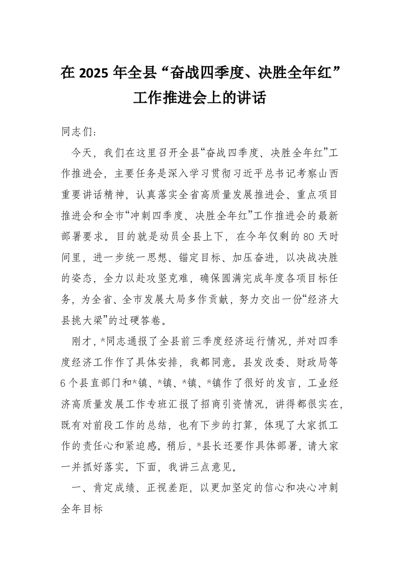 在2025年全县“奋战四季度、决胜全年红”工作推进会上的讲话