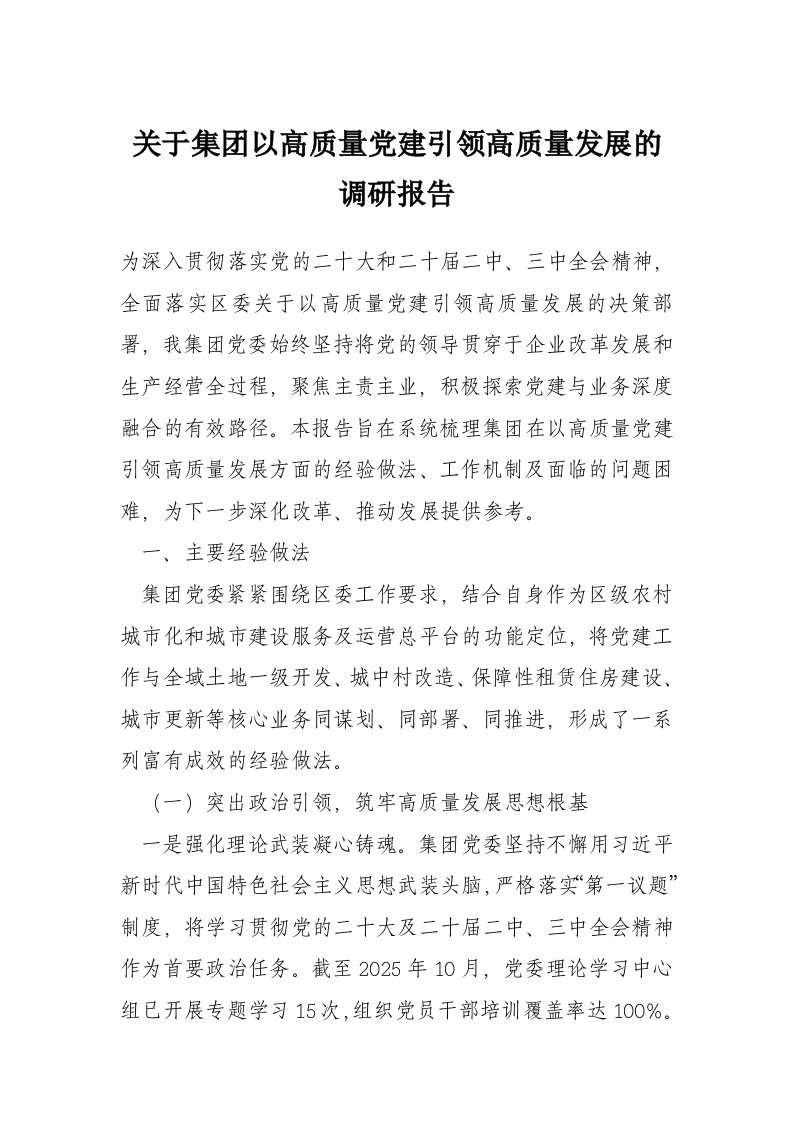 首页材料汇编关于集团以高质量党建引领高质量发展的调研报告