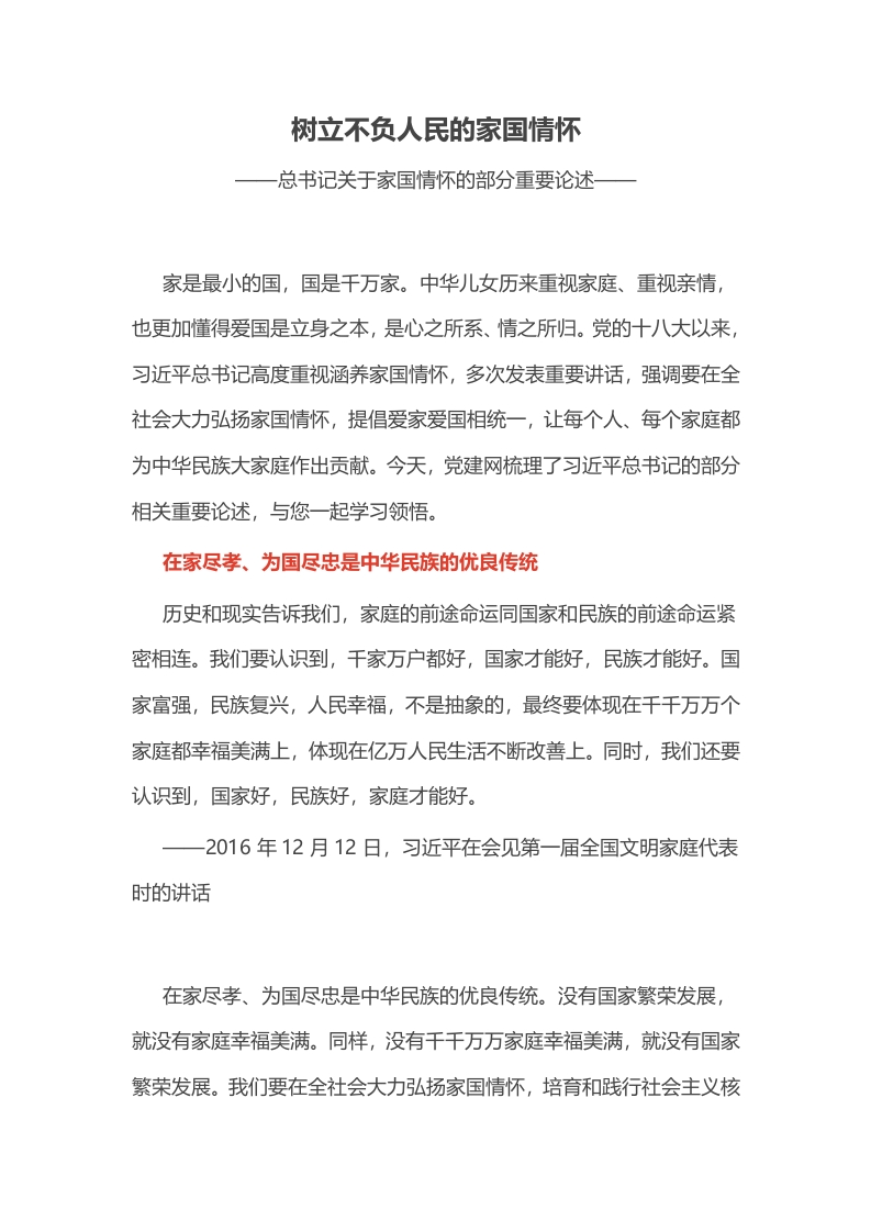 首页材料汇编党政风树立不负人民的家国情怀PPT总书记重要论述党课下载(讲稿)