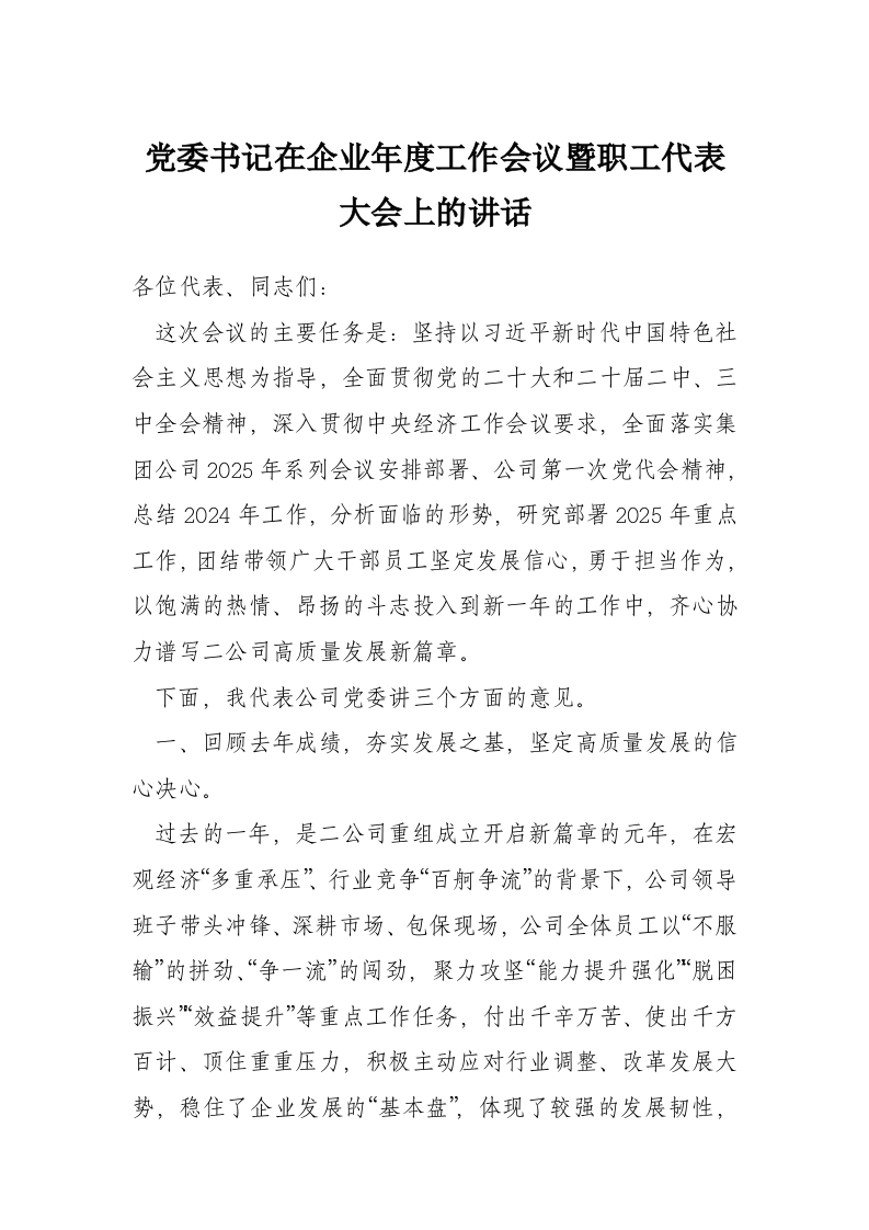 党委书记在企业年度工作会议暨职工代表大会上的讲话