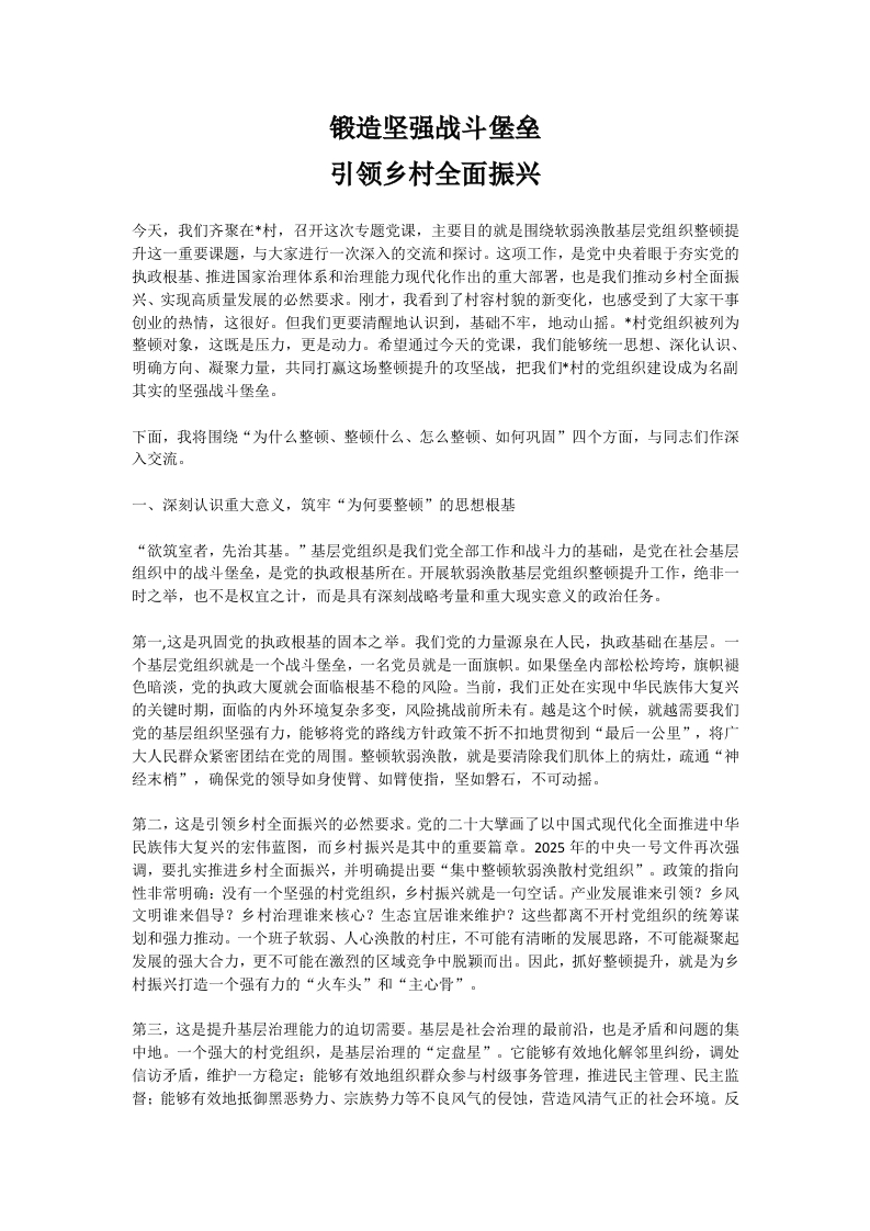 党建风锻造坚强战斗堡垒引领乡村全面振兴PPT农村基层党组织党课(讲稿)