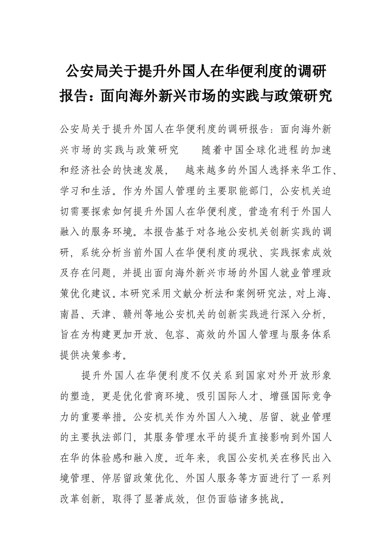 公安局关于提升外国人在华便利度的调研报告:面向海外新兴市场的实践与政策研究