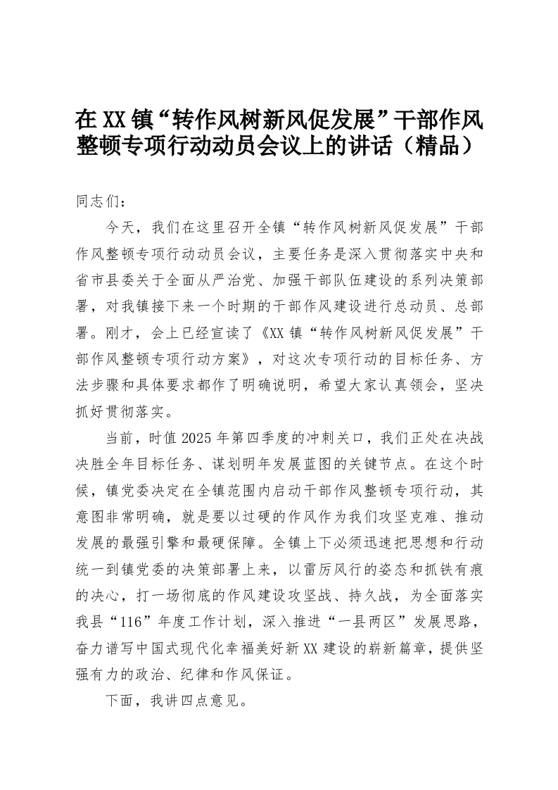 在XX镇“转作风树新风促发展”干部作风整顿专项行动动员会议上的讲话(精品)