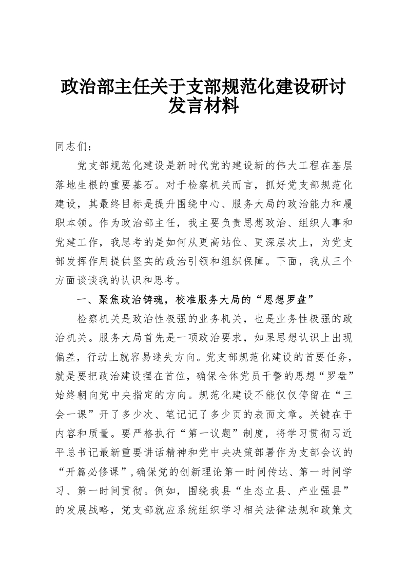 首页工作文档政治部主任关于支部规范化建设研讨发言材料