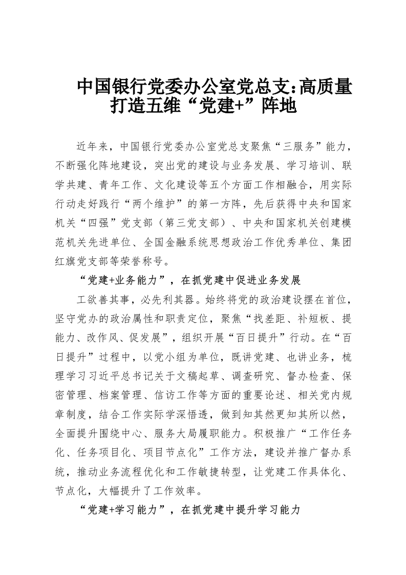 首页工作文档中国银行党委办公室党总支:高质量打造五维“党建+”阵地