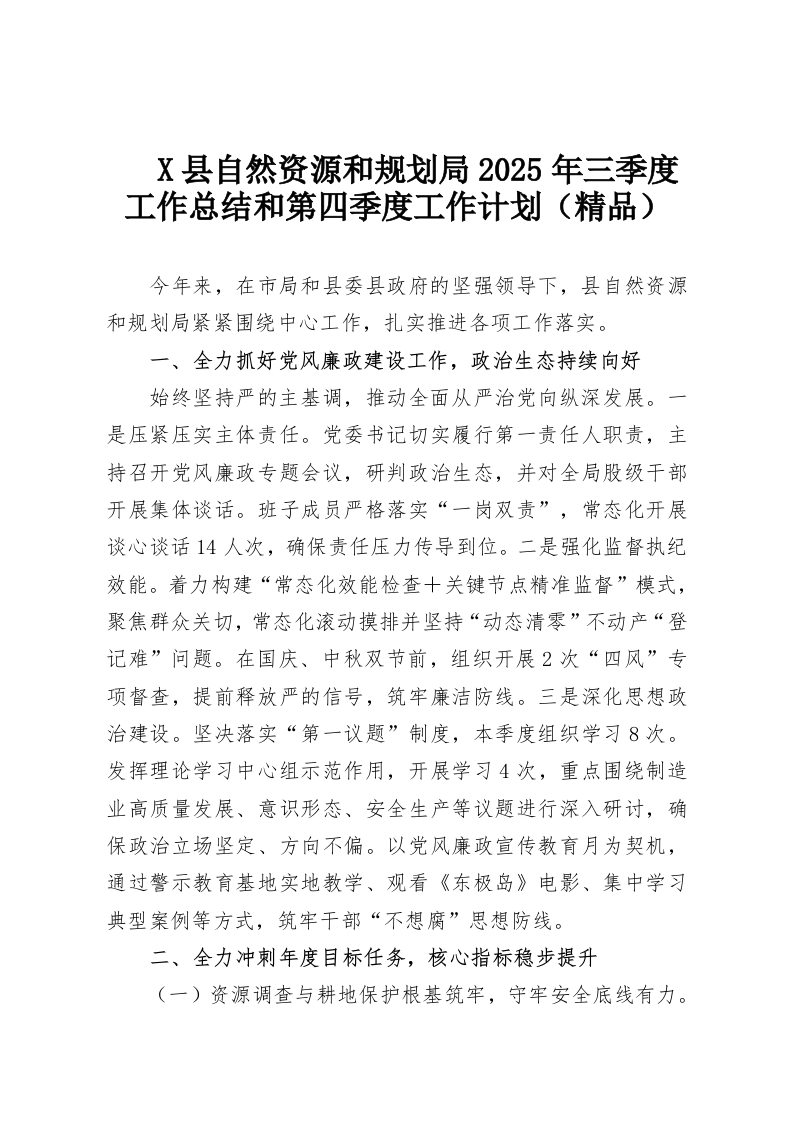 X县自然资源和规划局2025年三季度工作总结和第四季度工作计划(精品)