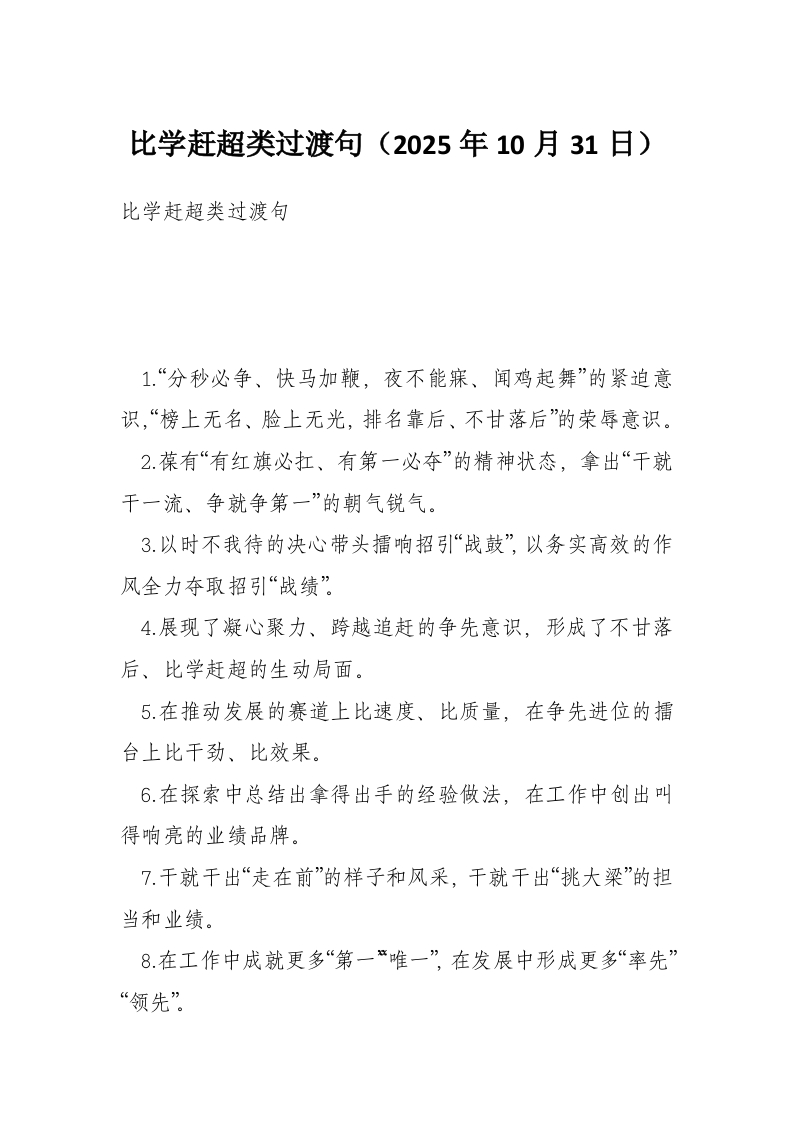 首页每日金句比学赶超类过渡句(2025年10月31日)