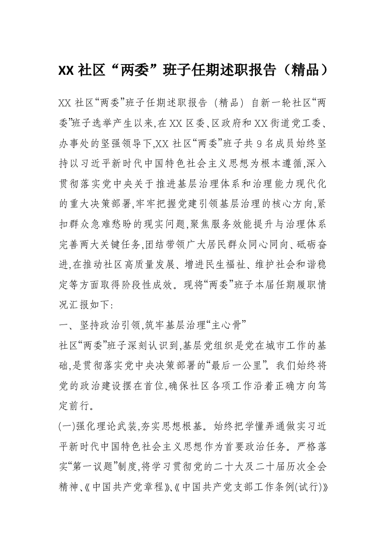 首页学习提升XX社区“两委”班子任期述职报告(精品)
