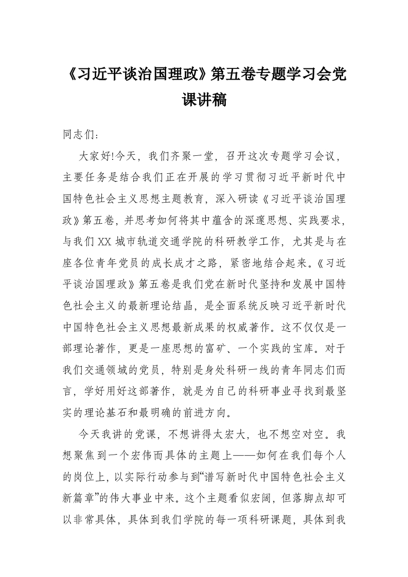 《***谈治国理政》第五卷专题学习会党课讲稿