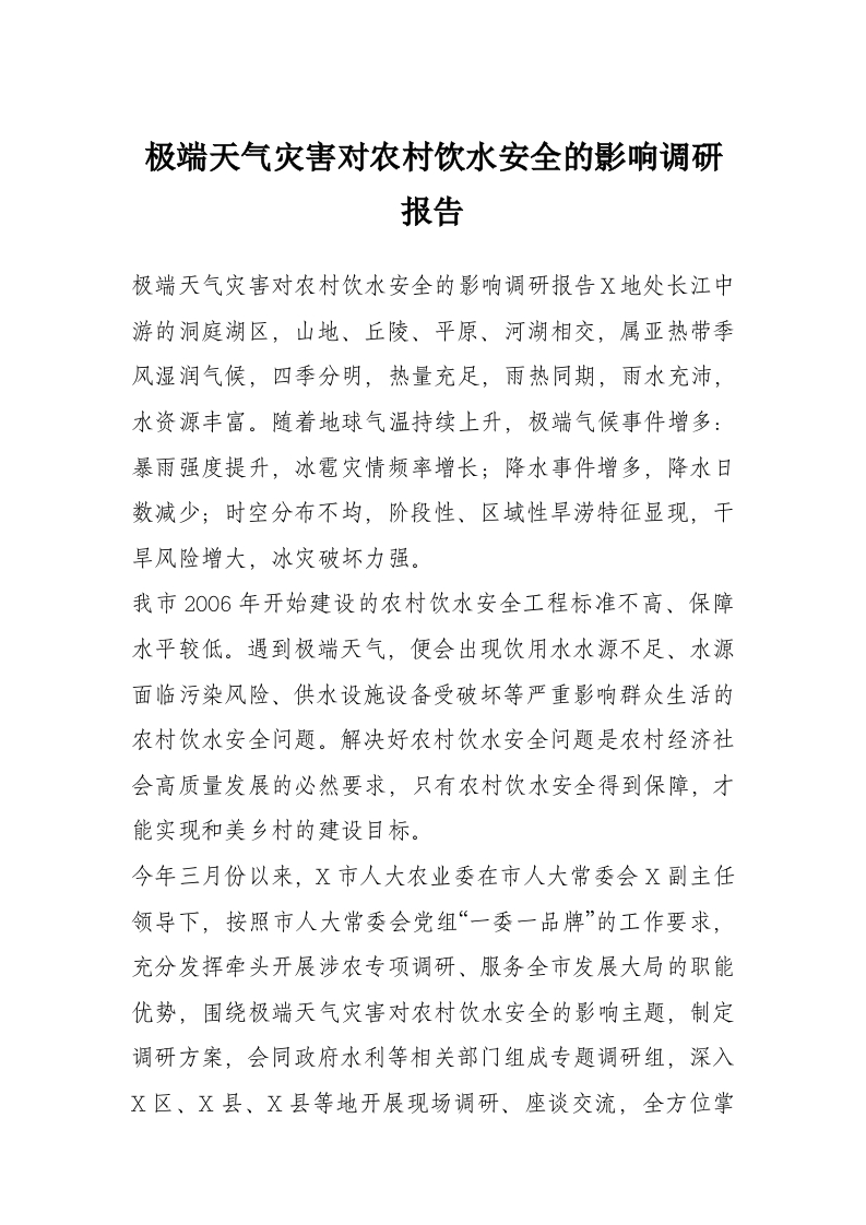 首页材料汇编极端天气灾害对农村饮水安全的影响调研报告