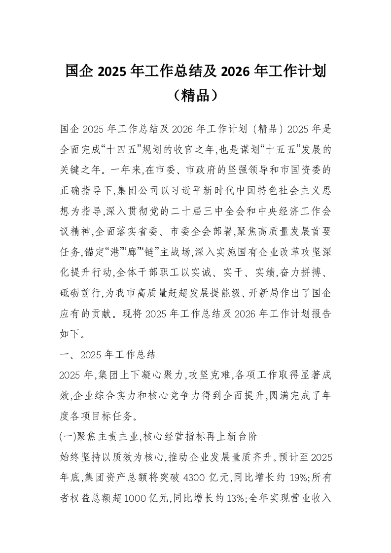 国企2025年工作总结及2026年工作计划(精品)
