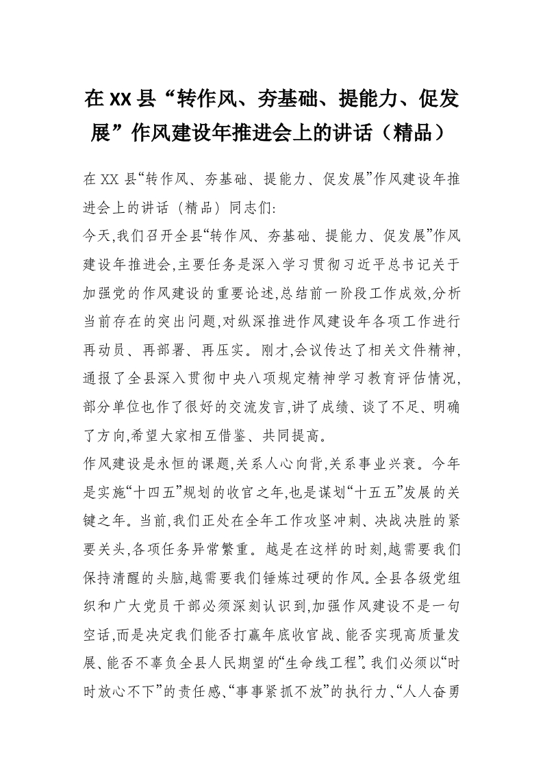 在XX县“转作风、夯基础、提能力、促发展”作风建设年推进会上的讲话(精品)