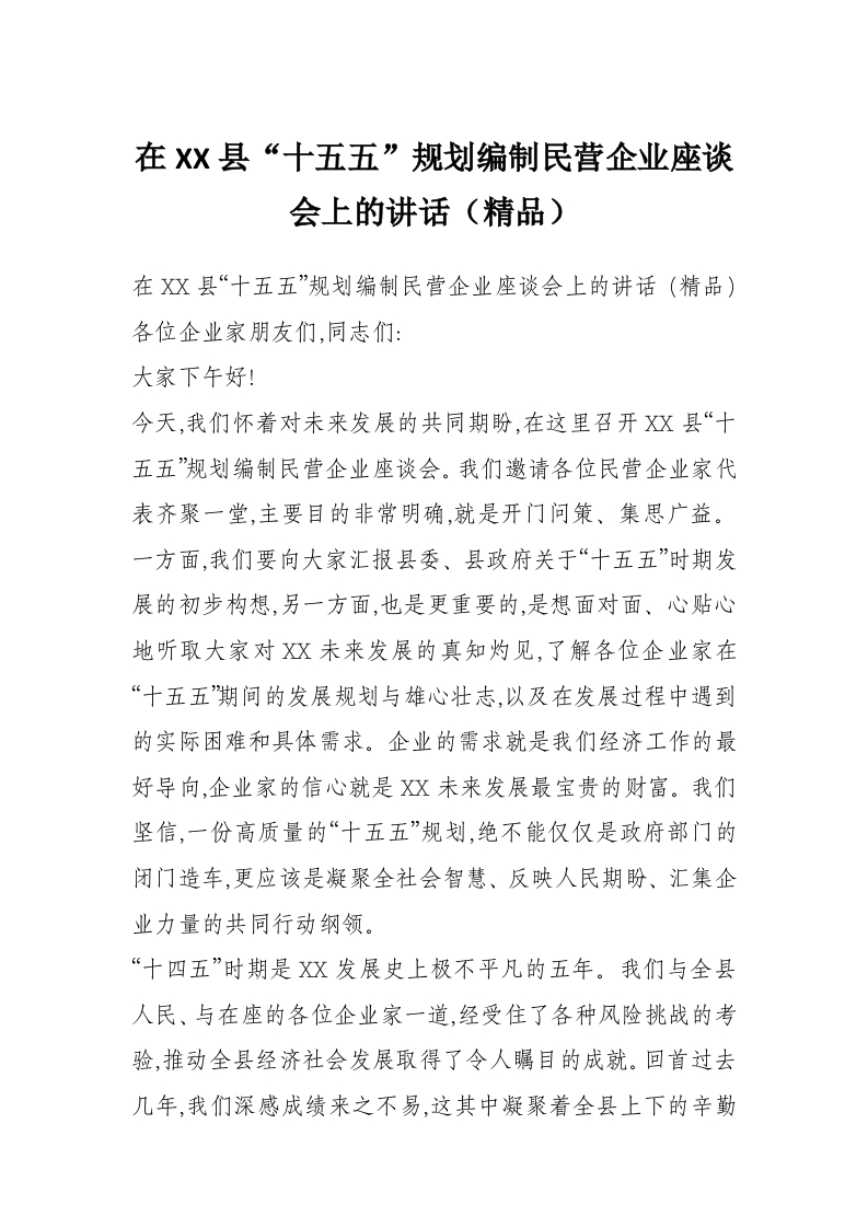 在XX县“十五五”规划编制民营企业座谈会上的讲话(精品)