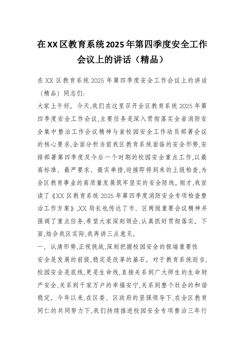 在XX区教育系统2025年第四季度安全工作会议上的讲话(精品)