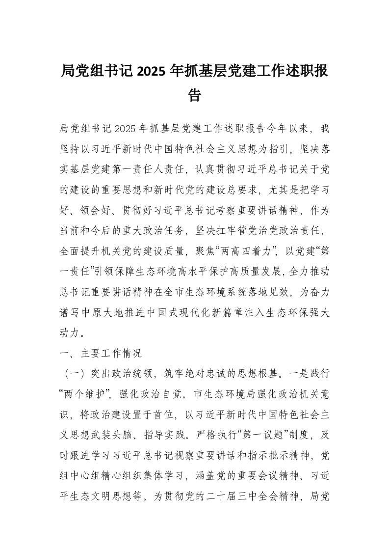 首页学习提升局党组书记2025年抓基层党建工作述职报告