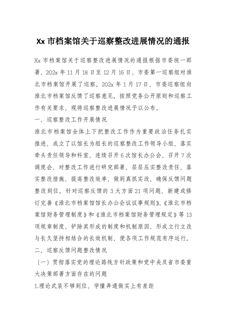 首页学习提升Xx市档案馆关于巡察整改进展情况的通报